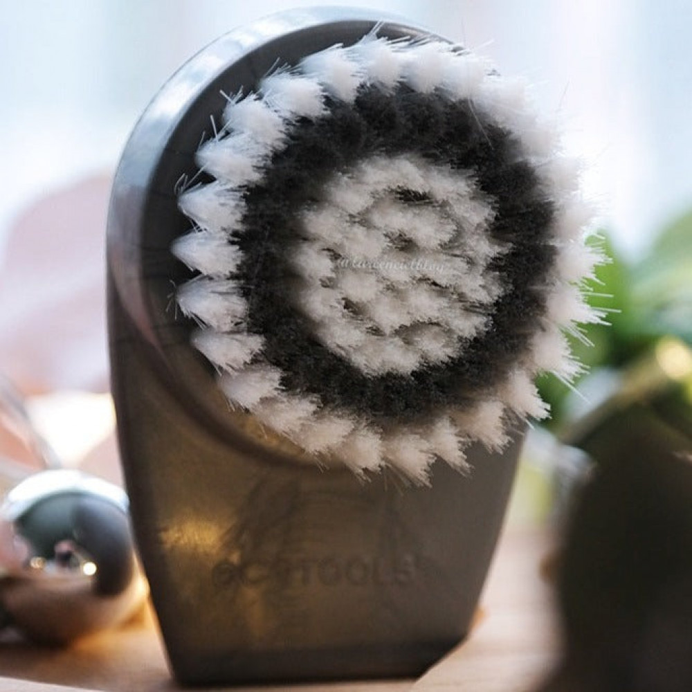 تم تصميم فرشاة تنظيف الوجه ايكو تولز بشعيرات ناعمة لتنظيف المسام العميقة والتقشير اللطيف.