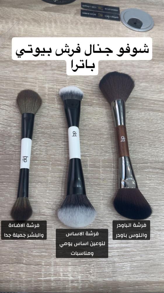 فرشاة مكياج مزدوجة من علامة "" (Beauty Patra ). تتميز هذه الفرشاة بوجود رأسين مختلفين لخدمة أغراض متنوعة في المكياج.