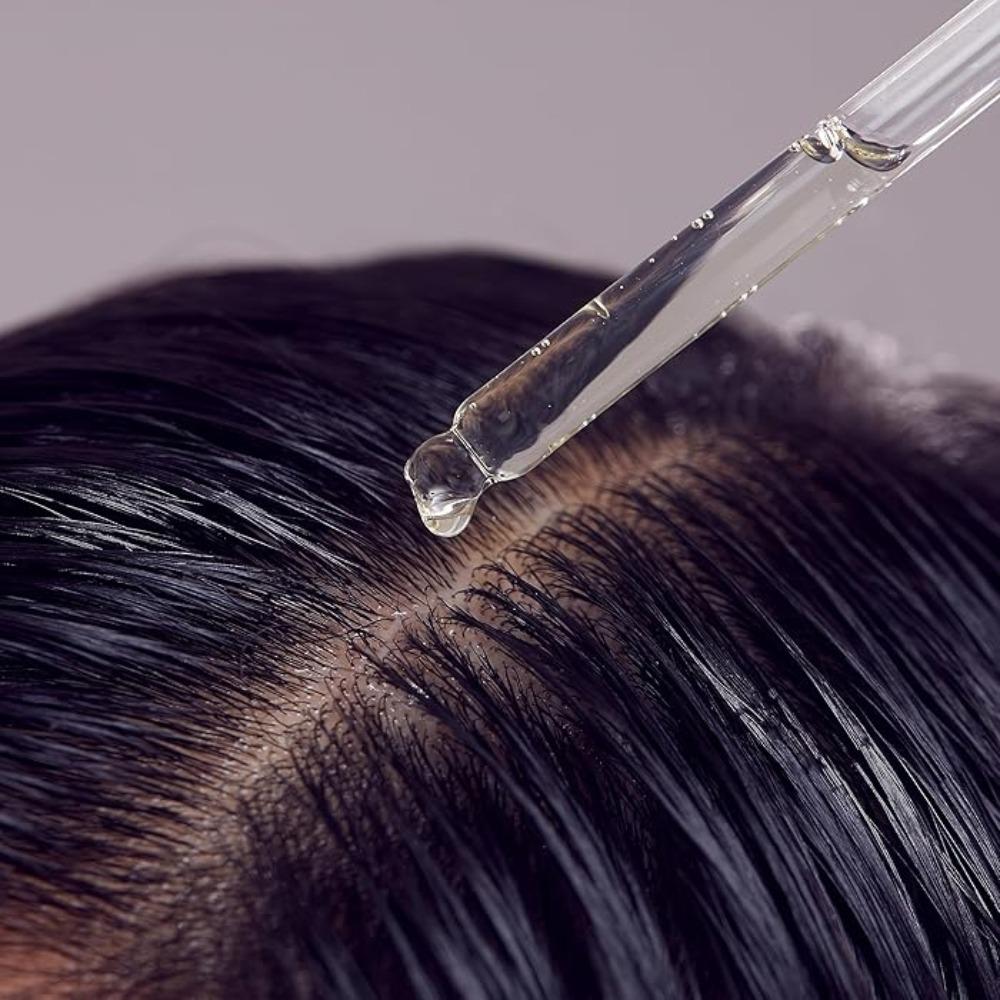 - ضعي السيروم: ضعي بضع قطرات من السيروم على فروة رأسك وقومي بتدليكها برفق.
