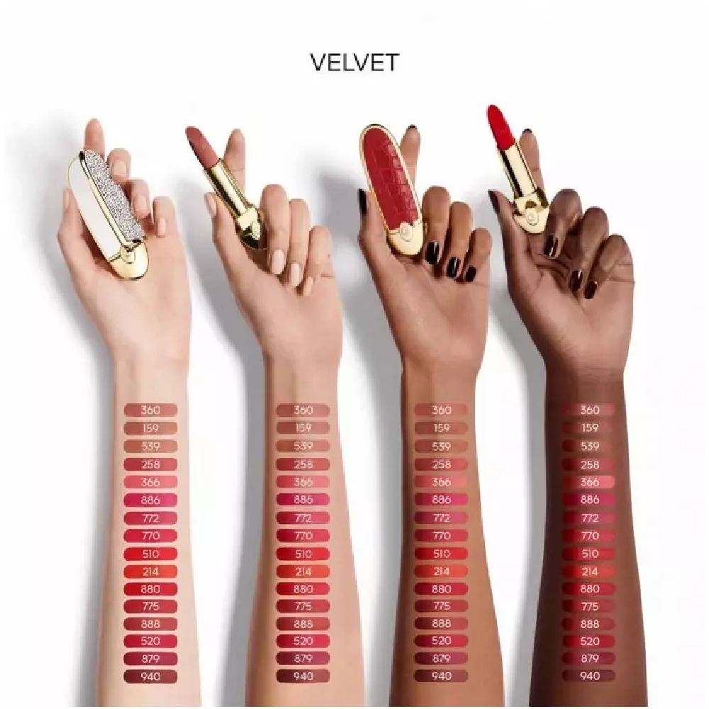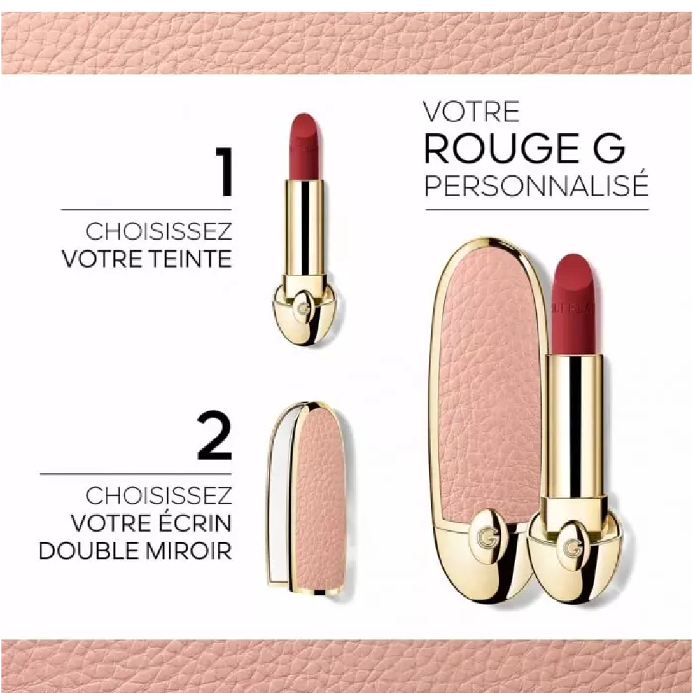 تمت إعادة تصميم روج جي أحمر الشفاه الأيقوني من جيرلان، في إصدار يحتوي على مجموعة متنوعة من الألوان الثابتة ذات الصبغة القوية، ويأتي في إصدار ساتاني أو مخملي مطفي. تحتوي تركيبته على عناصر للعناية بالبشرة بنسبة 89%¹، ويحتوي أيضًا على شموع طبيعية تتضمن خلاصة زيت الزنبق مع خصائص لتنعيم وتجديد البشرة من أجل راحة استثنائية².