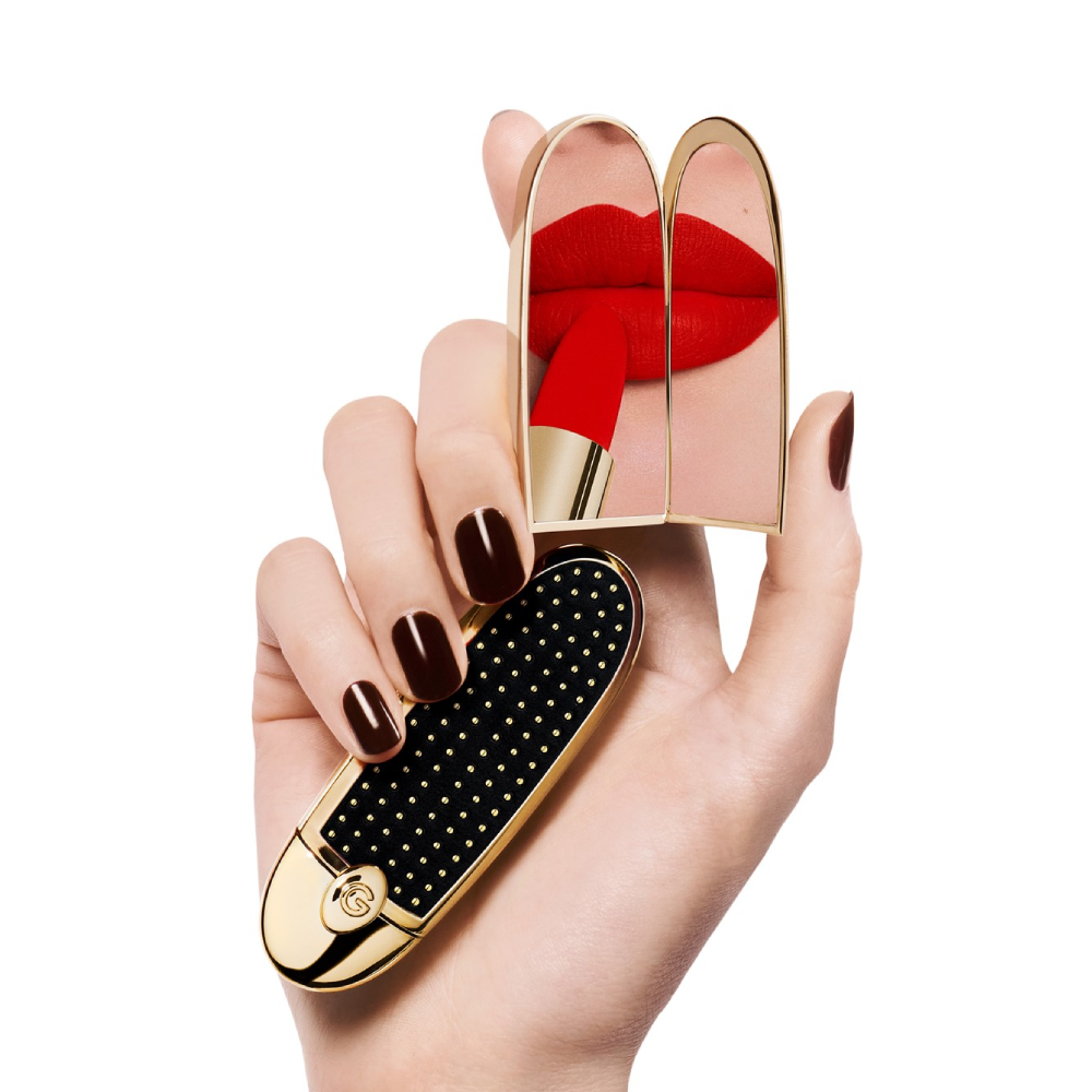 كما تم إعادة ابتكار تصميم أحمر الشفاه الشهير هذا بزخرفة ذهبية مبهرة جديدة تكشف عن مرآته المزدوجة السرية. تأتي علب أحمر الشفاه Rouge G القابلة للتخصيص وإعادة التعبئة حسب الرغبة في مجموعة من الديكورات التي تسلط الضوء على خبرة والتزام دار جيرلان.