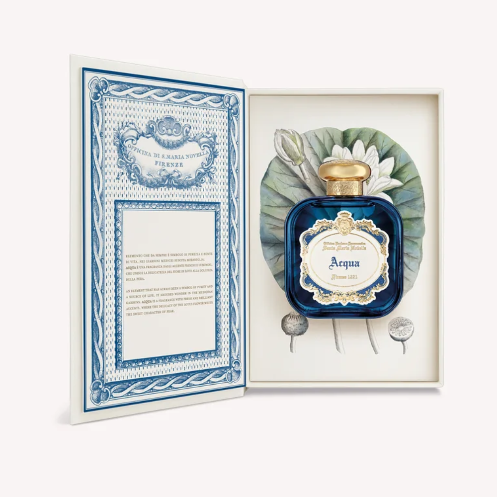 استوحت ماركة سانتا ماريا نوفيلا ماء عطر اكوا من المصدر الأساسي للحياة وهو الماء، فهو يأخذكم في رحلة إلى حديقة مزدهرة بالكامل، تمتزج بين نفحات الكمثرى والفريزيا بسلاسة مع زهرة اللوتس الرقيقة والمسك الترابي. وبينما تتجولون بجوار المياه المتدفقة من النافورة، تنتشر النفحات بتناغم خفيف ومنعش وتستحضر نقاء الطبيعة وحيويتها.