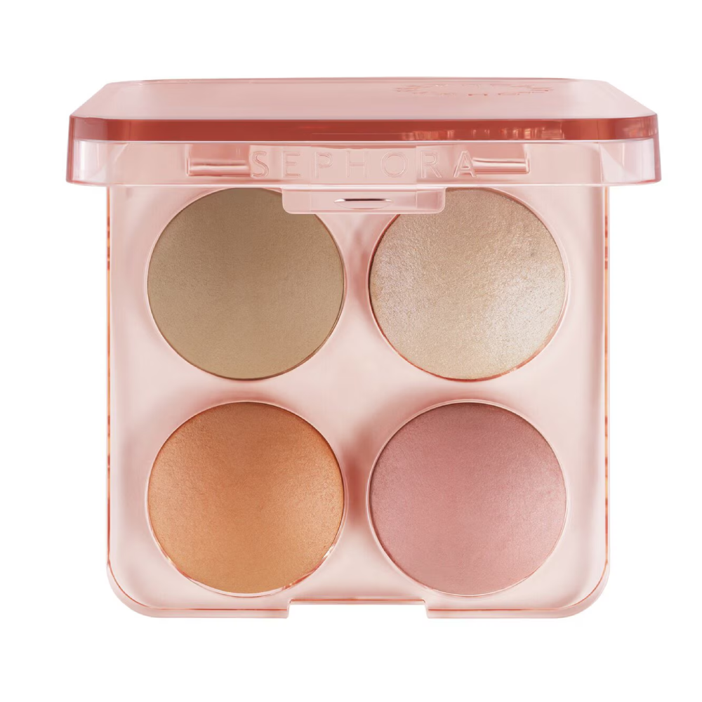يحتوي على 2 أحمر خدود (أحدهما بلون دافئ والآخر بلون هادئ)، وبودرة تسمير، وهايلايتر.