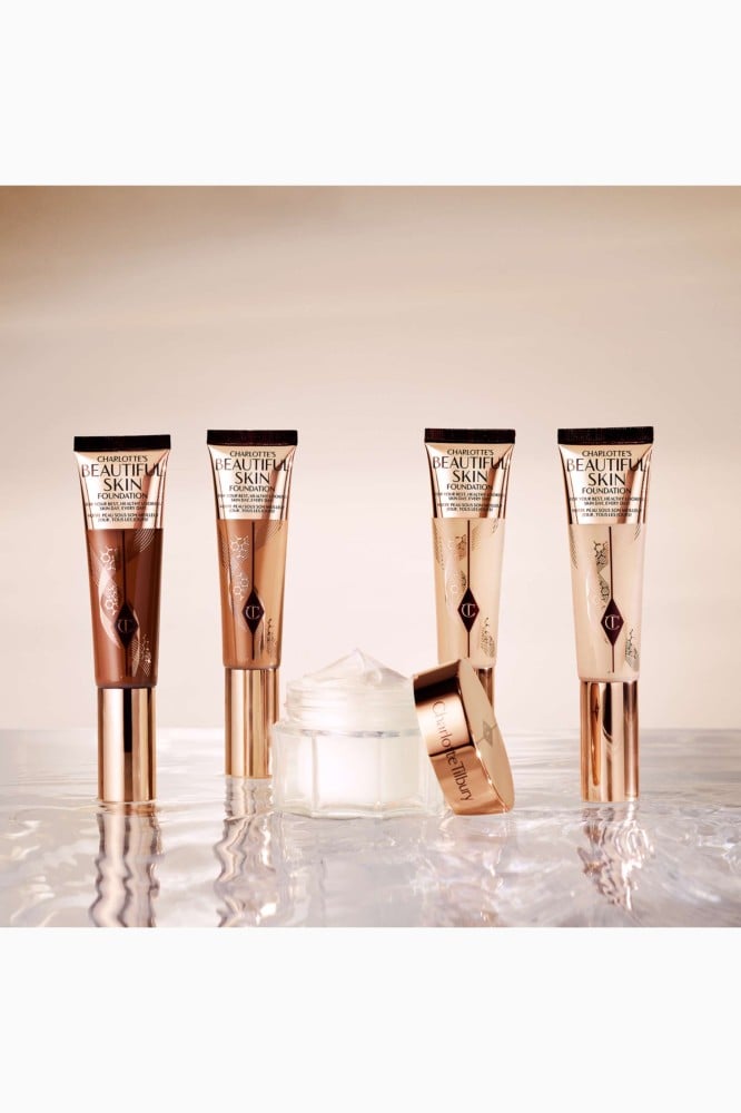 انعمي بإطلالة تفيض بالنضارة والإشراق مع كريم الأساس بيوتيفول سكين الجديد من ماركة شارلوت تلبوري الخبيرة في البشرة، فهو يحتوي على مركب الورد المعزز لتفتيح البشرة وحمض الهيالورونيك المرطب ليمنحك بشرة ناعمة ومشرقة مع كل استخدام. يتوفر بــ30 درجة لون وثلاث درجات داخلية مختلفة لتناسب جميع ألوان البشرة المختلفة.