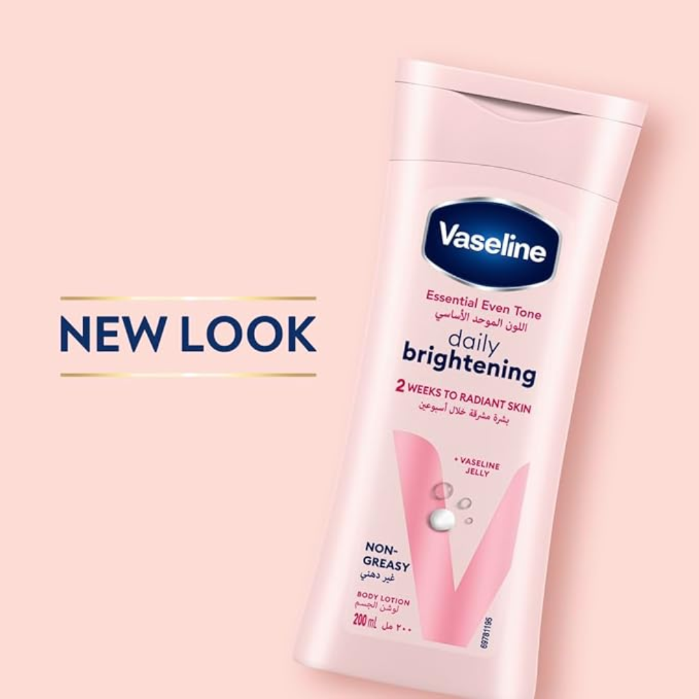 - توفر تقنية Vaseline Healthy Even Tone المسجلة الملكية إشراقًا وترطيبًا متقدمًا للحصول على مظهر صحي ومشرق وحتى بشرة