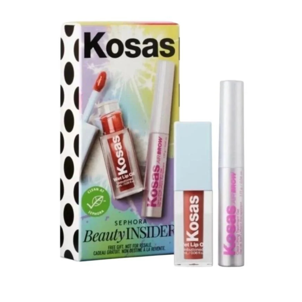 كوساس مجموعة شفاه وحواجب - ملمع شفاه مبلل ومكثف، علاج هجين للشفاه وملمع غني بحمض الهيالورونيك والببتيدات لترطيب الشفاه وزيادة امتلائها بشكل ملحوظ، دون الشعور بأي لسعة، بلون أحمر خدود ناعم ودافئ الأكثر مبيعًا. 0.06 أونصة / 2 مل - جل إير براو الشفاف + النظيف لرفع الحواجب مع تأثير التصفيح: جل حواجب شفاف معزز بمكونات فعالة للعناية بالشعر، يرفع الحواجب ويثبتها في مكانها، ويدعم مظهرًا أكثر امتلاءً وصحة. 0.06 أونصة / 1.77 غرام