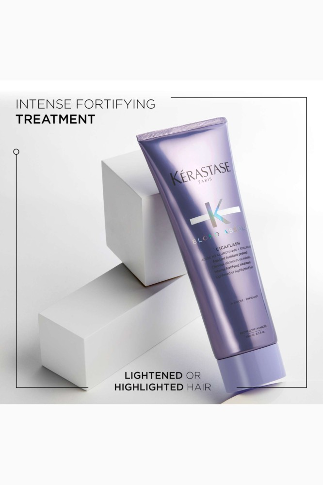 تقدم ماركة كيراستاس بلسم أبسولو سيكافلاش للشعر الأشقر بتركيبة جل بنفسجية اللون تجمع بين أداء القناع المميز في تجديد الشعر وتركيبة البلسم خفيفة الوزن. يأتي البلسم بمزيج رائع من حمض الهيالورونيك وزهرة الإديلويس ليغذي الشعر الأشقر المصبوغ ويمنحه نعومة فائقة لا مثيل لها. يعد البلسم خيارًا مثاليًا لجميع درجات الشعر الأشقر المصبوغ، حيث تحتوي تركيبته على السيكافلاش الذي يغذي ألياف الشعر ويحميه من التقصف للحصول على شعر ناعم ولامع.
