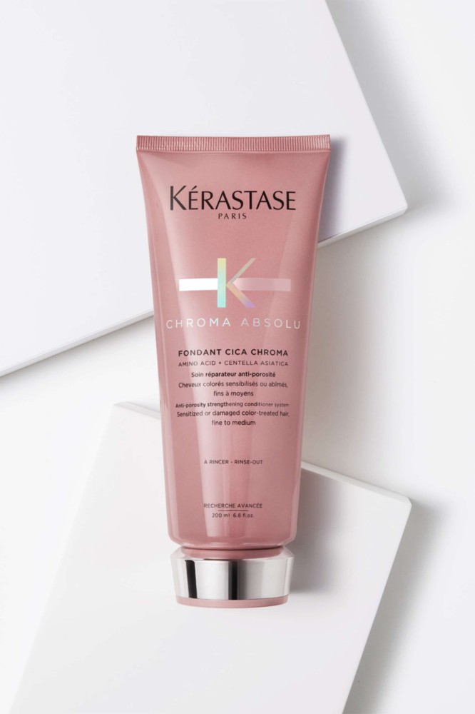 تقدم ماركة كيراستاس بلسم كروما أبسولو المضاد للمسامية بتركيبة خفيفة الوزن لتغذية الشعر بعمق وتنعيم أليافه وتقليل مساميته وتقوية الأجزاء التالفة. يتميز هذا البلسم بتركيبة مصممة خصيصًا للشعر الحساس والتالف والمصبوغ ويعمل على إصلاح الشعر الخفيف ومتوسط الكثافة بفعالية. وتحتوي تركيبته على حمض اللاكتيك الذي يعمل على مقاومة المعادن المسببة لبهتان الشعر وبالتالي يساعد في تحسين لمعان الشعر ولون الصبغة.