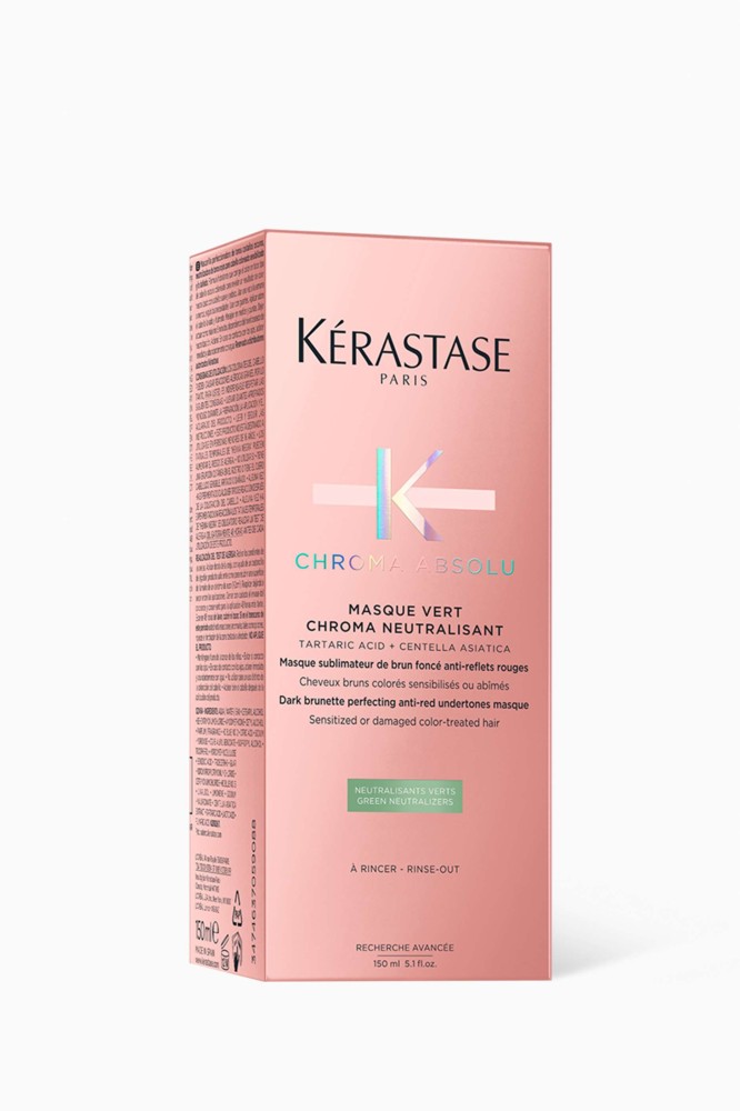 يأتيك قناع كروما أبسولو لتجديد لون الشعر بتركيبة مرطبة ومصححة للون الشعر تعمل على محايدة درجات الأحمر غير المستحبة للحصول على لون بني بارد وداكن. يمكن استخدامه مع جميع أنواع الشعر الداكن المصبوغ، كما يمكن استخدامه مع الشعر الداكن غير المصبوغ لمحايدة درجات الأحمر لتنعمي بلون داكن وبارد. ويساعد في تعزيز ترطيب الشعر بنسبة 89% وتنعيمه وتقليل مساميته والحفاظ على اللون لمدة أطول. وتصبح ألياف الشعر أكثر قوة بنسبة 53% وأقل عرضة للتكسر.