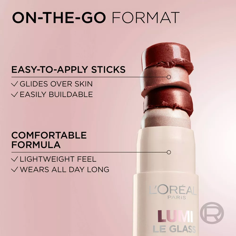 - اكتشفي أقلام Lumi Le Glass Sticks، لمسة نهائية زجاجية عاكسة تمنحكِ توهجًا فوريًا متعدد الأبعاد بلمسة واحدة، من لوريال باريس.