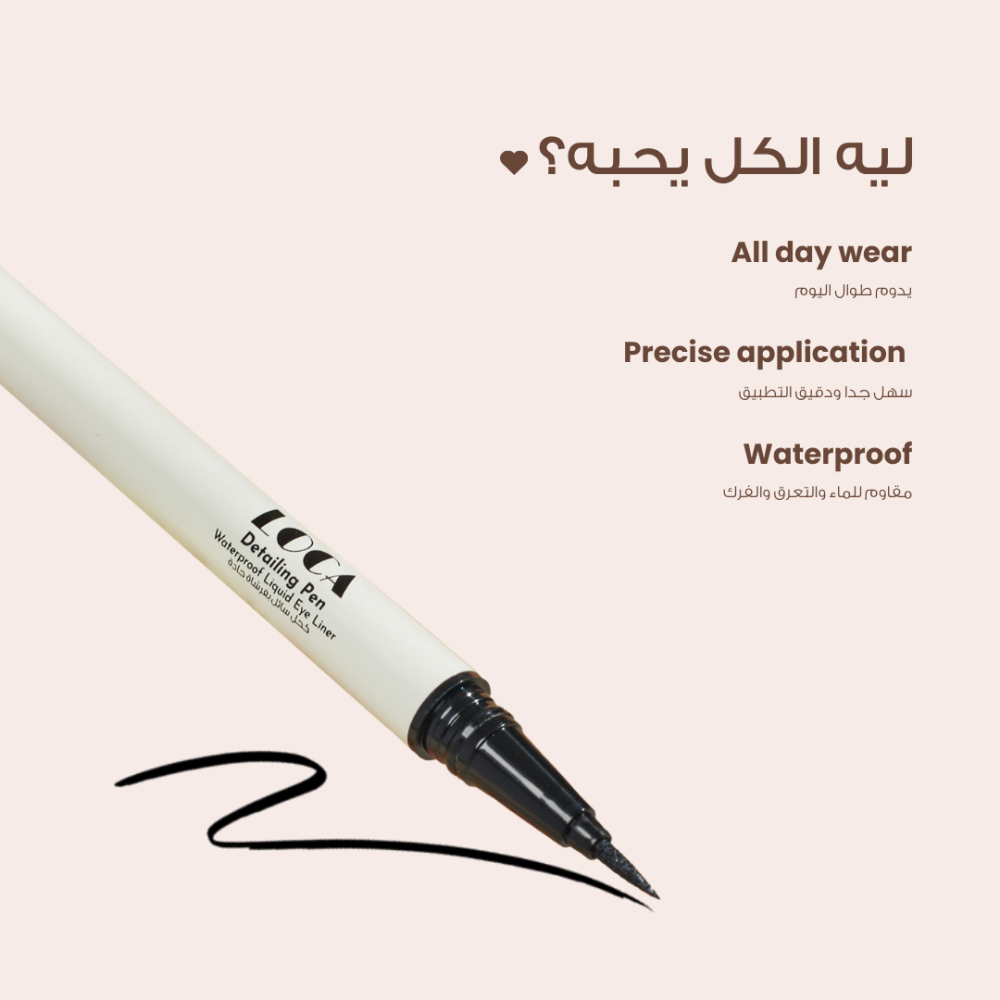 لون اسود داكن, سهولة رسمه على العين, تركيبة لطيفة لا تسبب حساسية العين, يدوم طويلاً حتى 12 ساعة