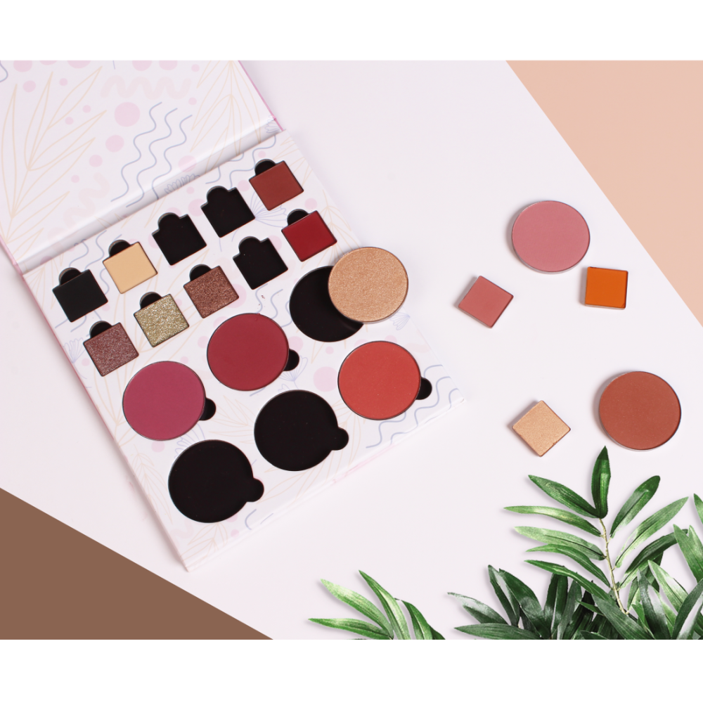 علبة ظلال العيون وأحمر الخدود المتكامل القابل لأعاده التعبئة، يحتوي على 10 لون ظلال عيون و 6 ألوان أحمر خدود مختلفة بين المطفي والامع