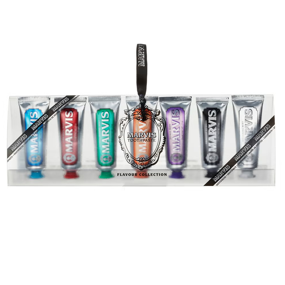 مجموعة ثلاثية من معاجين الأسنان لتحفيز الإدمان، تجمع مجموعة نكهات معجون الأسنان من مارفيس بين ثلاثة أحجام اكتشافية لإضفاء بعض الذوق الإيطالي على حوضك - ناهيك عن بعض السحر في تنظيف الأسنان (إذا اختار توم ريبلي معجون الأسنان، فمن المؤكد أنه سيكون هذه).