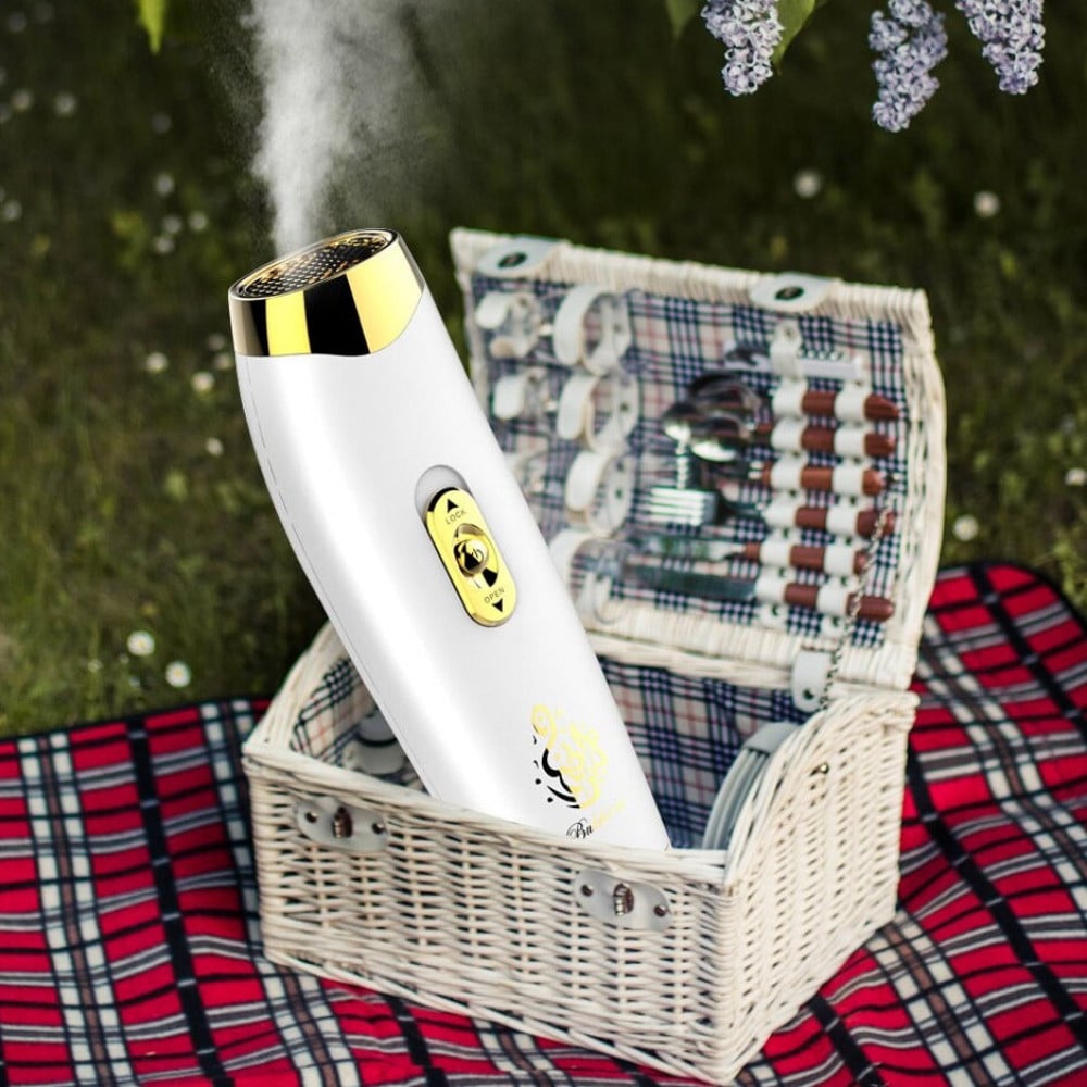 مبخر الكتروني (جهاز دخون) سهل الإستخدام جميل المظهر خفيف الوزن ويتوفر بلونين (وردي - أسود) يتم إعادة شحنة بسهولة بإستخدام USB، ويستخدم للتبخير في المنزل أو المكتب أو السيارة، وقد تم صنعه بإحترافية وجودة عالية من مواد خفيفة الوزن ليسهل حملة واستخدامة بسرعة وسهولة في المنزل وأماكن العمل والسيارة وغيرها.. ويحتوي على مجموعة متكاملة تتمثل في حقيبة سفر صغيرة تسهل الحمل والتنقل بخامة مميزة، وملقاط أنيق للبخور، وشريحتين إحتياطية (ورق مش) تستخدم كقاعدة للبخور عند استخدام المبخر، وفرشاة تنظيف صغيرة، وكابل يو اس بي USB قصير، وكتالوج الإرشادات والإستخدام (عربي - إنجليزي)