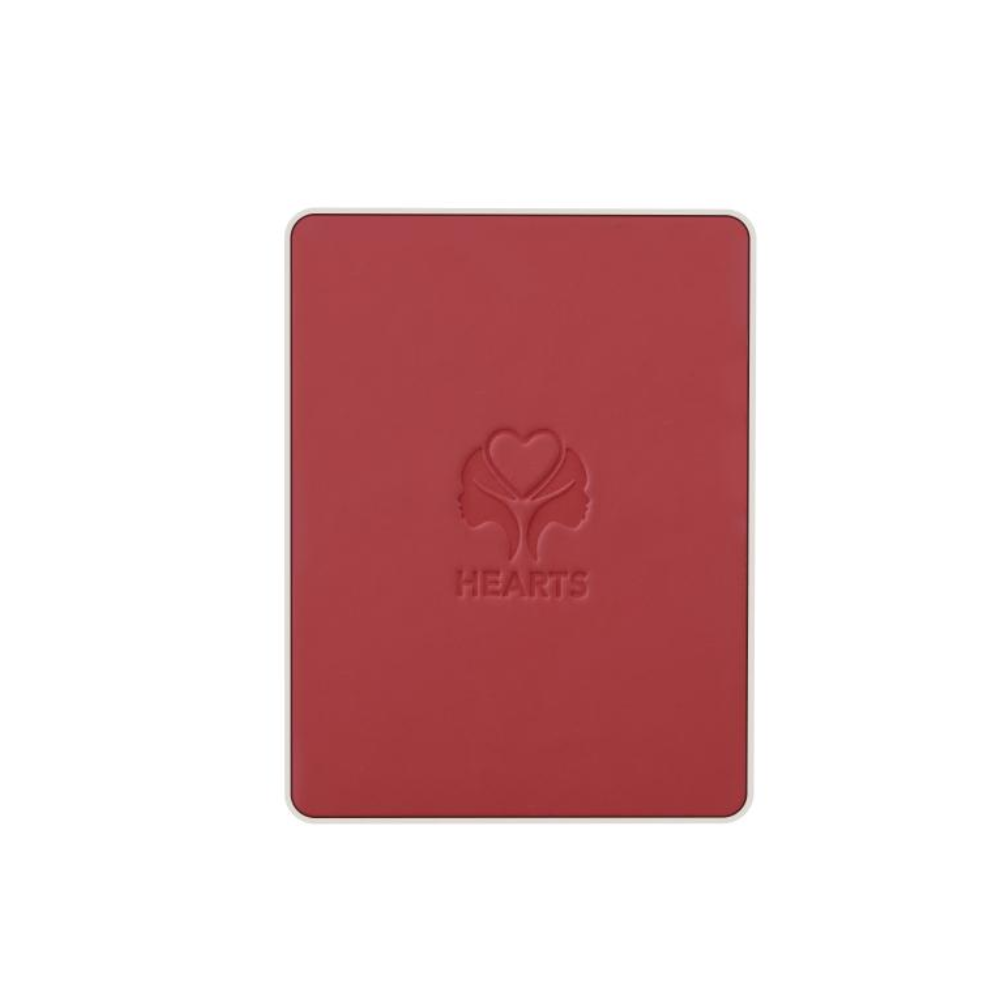 تصميم فاخر: تأتي البودرة في عبوة مصنوعة من الجلد، بلون يتطابق مع لون أحمر الخدود بداخلها، مع شعار Hearts المحفور على الغلاف لتجربة فاخرة.