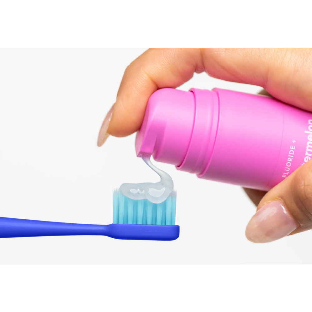 - ضعي كمية صغيرة من معجون الأسنان على رأس الفرشاة.