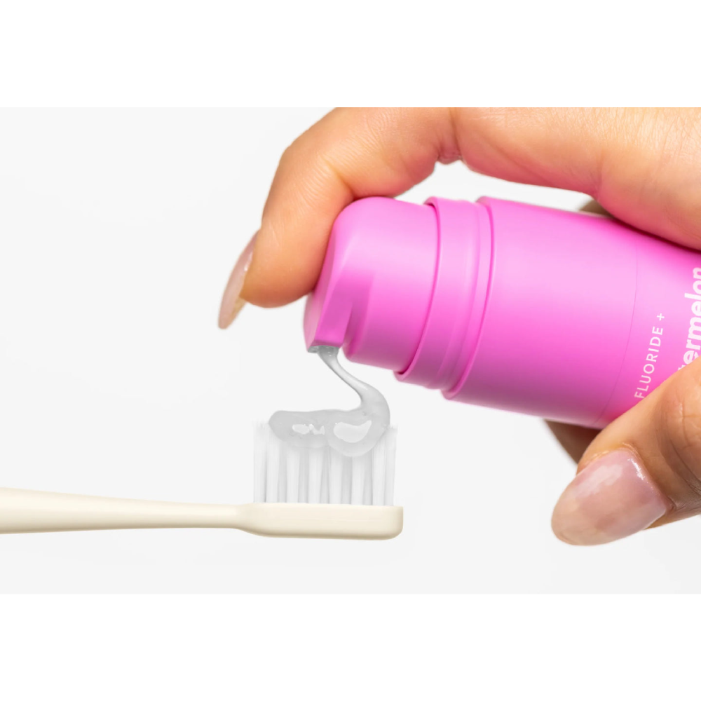 1. ضعي كمية صغيرة من معجون الأسنان على رأس الفرشاة.