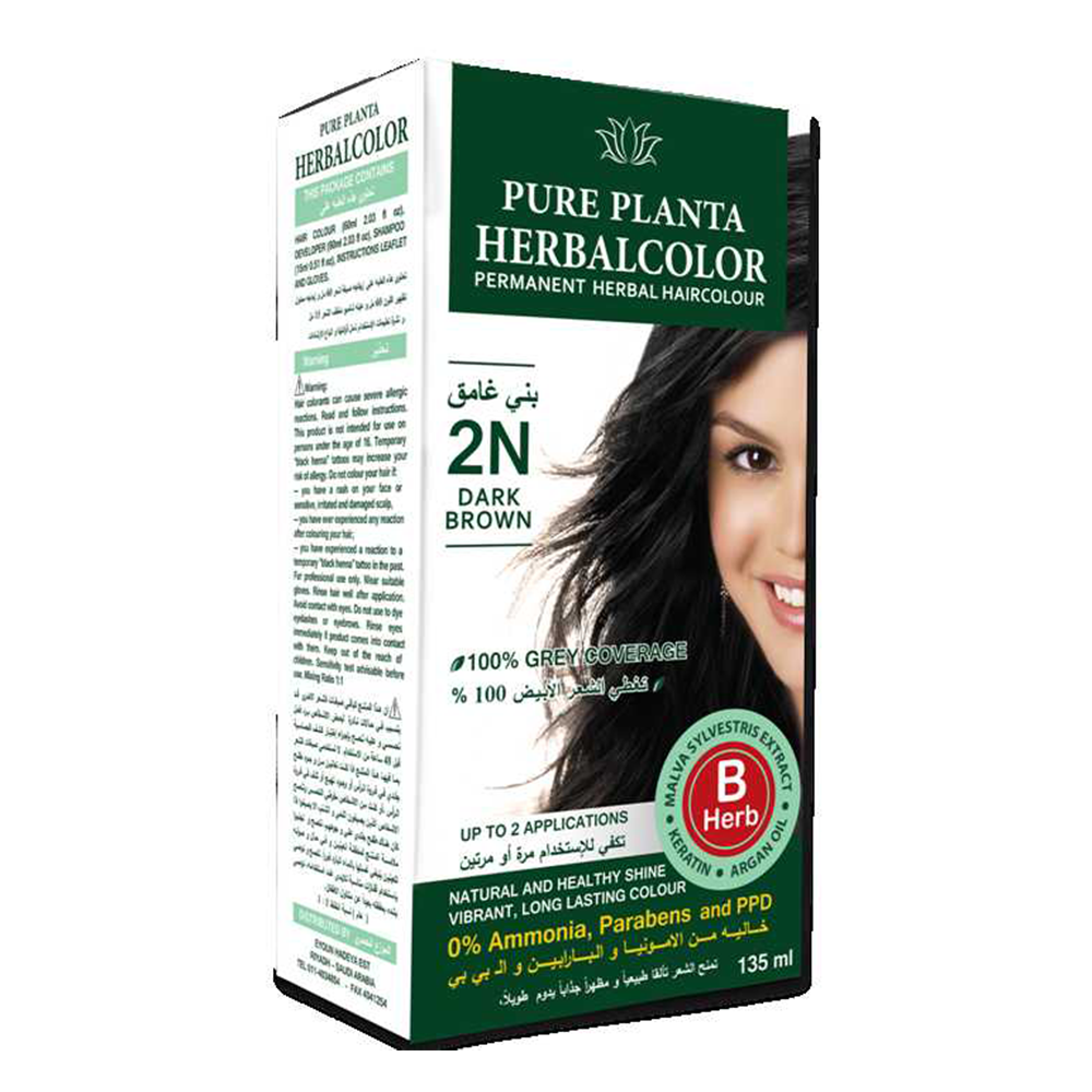 عبارة عن جل لتلوين الشعر بدرجة بني إن 2 لتلوين الشعر خالي من الأمونيا بمكونات طبيعية بخلاصة 8 أعشاب تتمتع بمكوناتها المفيدة للشعر في التجميل و التغذية، يعطي نتيجة مرضية و يعمل على تغطية الشعر الأبيض بنسبة 100%، تكفي كمية العبوة لللإستخدام مرتين ، خالي من المواد المسببة للحساسية