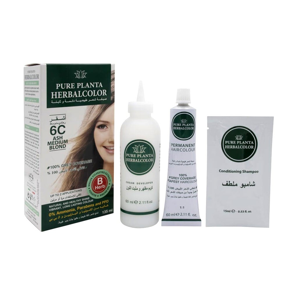 هيربال صبغة شعر دائمة خالية من الأمونيا و تتكون من 8 مستخلصات من الأعشاب. كما تغطي الشيب بنسبة 100% لتمنحه مظهرًا طبيعيًّا و كثيفًا و غنيًّا بالمميزات. هيربال يُعيد لشعرك اللمعة و الحيوية و سيبدو شعرك صحيًّا و جميلًا بشكل طبيعي.