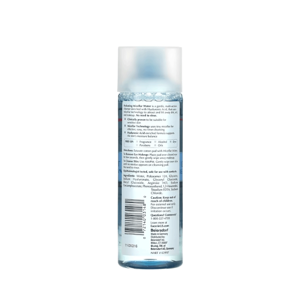 ماء ميسيلار المرطب هو منظف لطيف متعدد المفعول غني بحمض الهيالورونيك الذي يستخدم تقنية ميسيلار لجذب الأوساخ والزيوت والمكياج والتخلص منها. لا يلزم شطفه بعد الاستخدام.