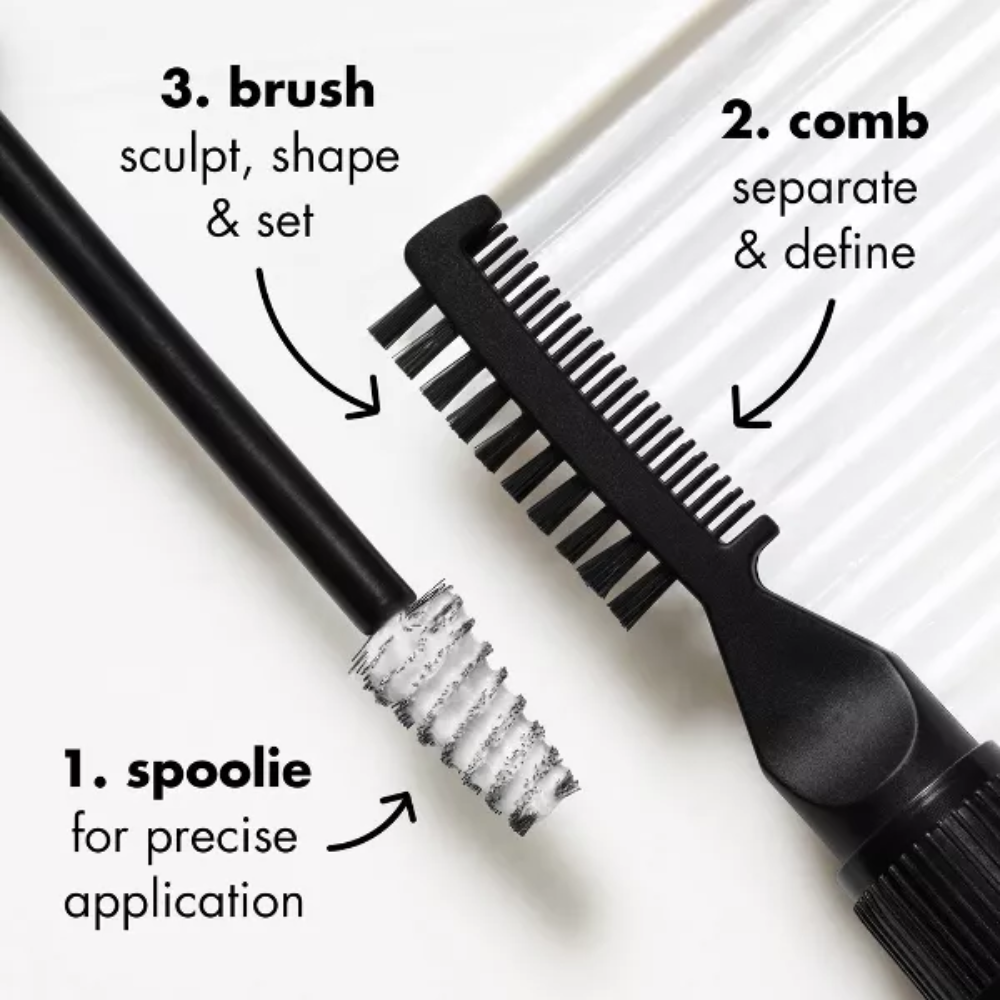 - أداة توزيع 3 في 1 ذات طرفين، تستخدم لوضع المنتج وتمشيط وتشكيل الحواجب