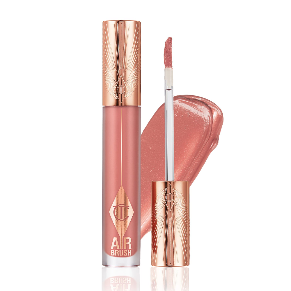 أحمر شفاه سائل من نوع "إيربروش" من ماركة شارلوت تيلبوري الشهيرة في عالم المكياج. يتميز هذا النوع من أحمر الشفاه بأنه يمنح الشفاه مظهراً ماتياً مخملياً، وكأنه تم تطبيقه بفرشاة الهواء، مما يوفر تغطية مثالية وناعمة.