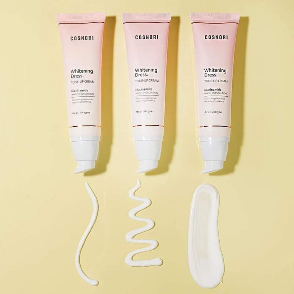 كريم تفتيح وتوحيد لون البشرة من ماركة كوسنوري (COSNORI) و يسمى "وايتنينج دريس تون أب كريم" (Whitening Dress Tone-Up Cream).