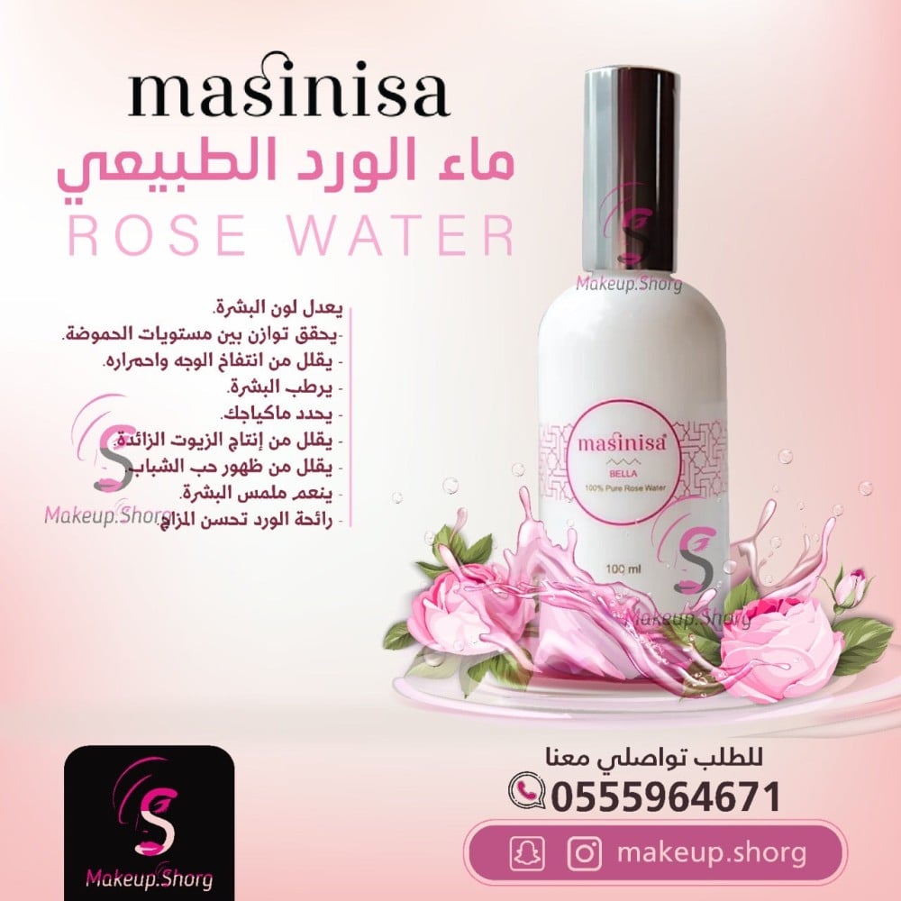 ماء ورد طبيعي نقي ، يعتبر من أفضل المواد الطبيعية للبشرة ، يفضل وضعه في روتين العناية اليومي بالبشرة ، لو فوائد عديدة أهمها تنظيف البشرة و ترطيبها و منحها ملمس ندي ، يعتبر أقوى و أفضل تونر طبيعي للبشرة ، و يجانب ذلك رائحته جميلة وفواحة يمنحك احساس الجمال و الراحة ، من أقوى المواد في توحيد لون البشرة ، يعالج التهابات الجلد المختلفة مث البثور و الإحمرار و تهيج البشرة ، يعالج مشاكل البشرة الدهنية ، ينعم البشرة و يغذيها و يحميها من التجاعيد و من آثار التقدم في السن ، متوفر بحجم 100 مل