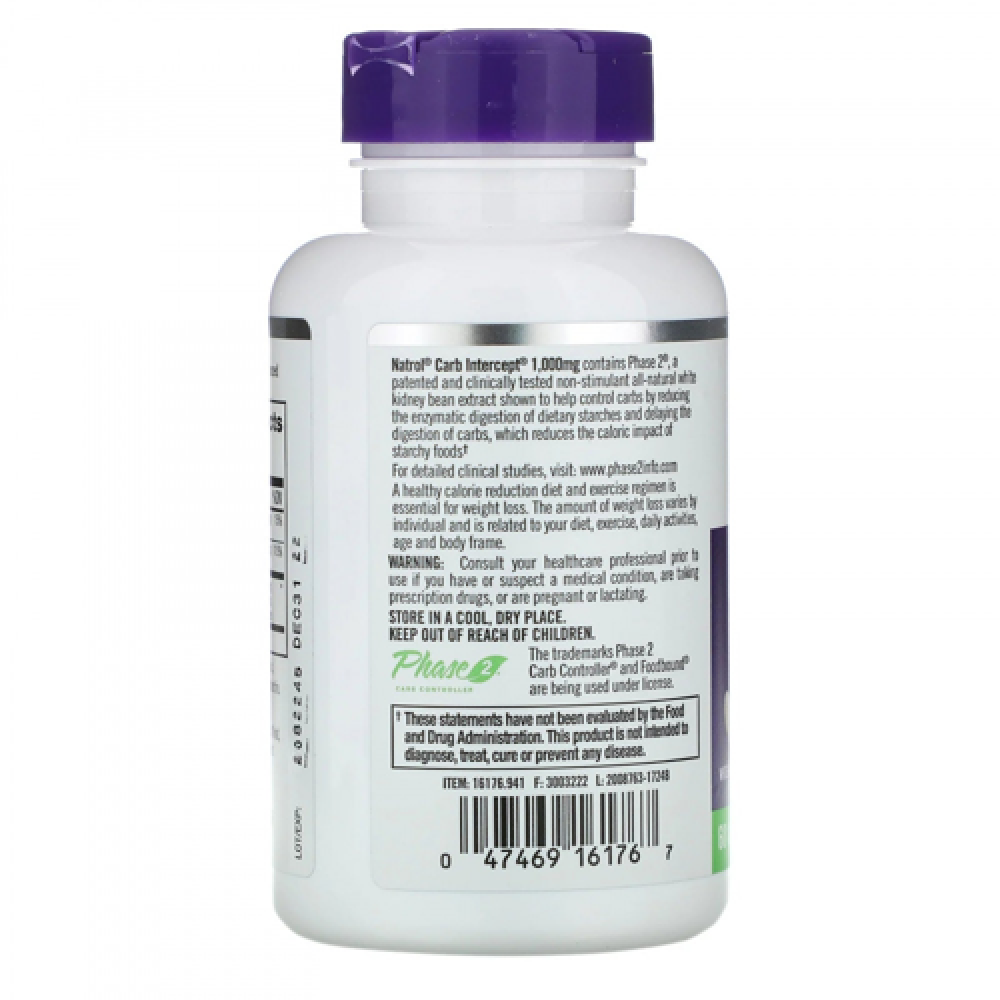 Natrol Carb Intercept with Phase 2 Carb Controller 500 mg - 60 Veggie Caps